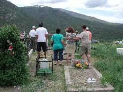 On Sunday, May 29, 2005 we had a Memory Walk at the Pueblito Cemetery to honor and remember members of our family who had passed on. We gathered here to walk thru the cemetery and pay our respects especially to Grandpa Florencio and Grandma Patroncinia. We shared memories as we visited the final resting places of members of the Montoya family buried in Questa and to remember other family members who once called Questa home.