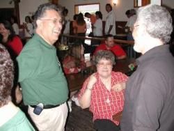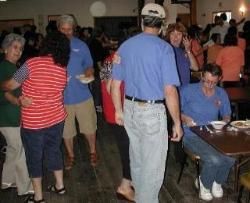 Before we entered the VFW Hall to enjoy our New Mexican style meal, we had a chance to meet one another and enjoy the wonderful May weather of the region. Here you see the mixing of the various colored shirts and family members.