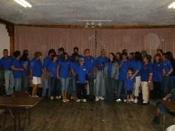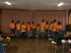 Tio Pete and Tia Oclides Montoya family introductions. Each family introduced members of their families, both present and those unable to make the reunion. Each family wore a different color shirt. Tio Pete's family wore White shirts so everyone would know what family they represented